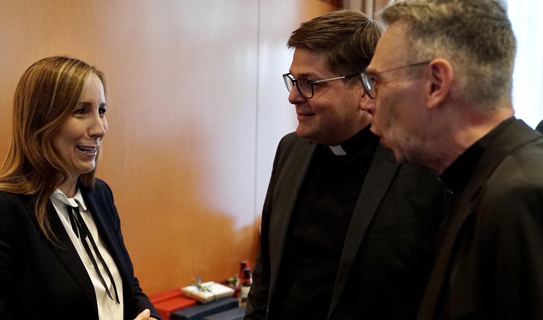 „Das Kommissariat der Bischöfe ist eine ganz wichtige Institution mit einer langen Tradition“, erklärte die hessische Landtagspräsidentin Astrid Wallmann. Es sei für die Landespolitik die zentrale Anlaufstelle für alle Fragen, die das Miteinander von Kirche und Politik beträfen. Das Kommissariat vertrete die Interessen der Diözese und der Bischöfe in die Politik hinein. „Sie, lieber Dr. Pax, haben dies in ganz herausragender Weise gemacht. Sie haben den Dialog mit der Politik gesucht und intensiviert. Sie waren konstruktiv, haben sich der nicht immer leichten Aufgabe gestellt und ganz überzeugende Arbeit geleistet“, so Wallmann. Sie lobte Pax als verlässlichen Gesprächspartner, dessen Meinung und Rat parteiübergreifend stets sehr geschätzt worden sei. An dieses gute Miteinander könne Tonke Dennebaum nun gut anknüpfen, die Netzwerke weiter ausbauen und so mit dazu beitragen, einen Beitrag zum Gemeinwohl zu leisten. „Ihnen, lieber Dr. Dennebaum, viel Glück und gutes Geschick. Die Landesregierung freut sich auf die Zusammenarbeit mit Ihnen“, sagte Wallmann.
