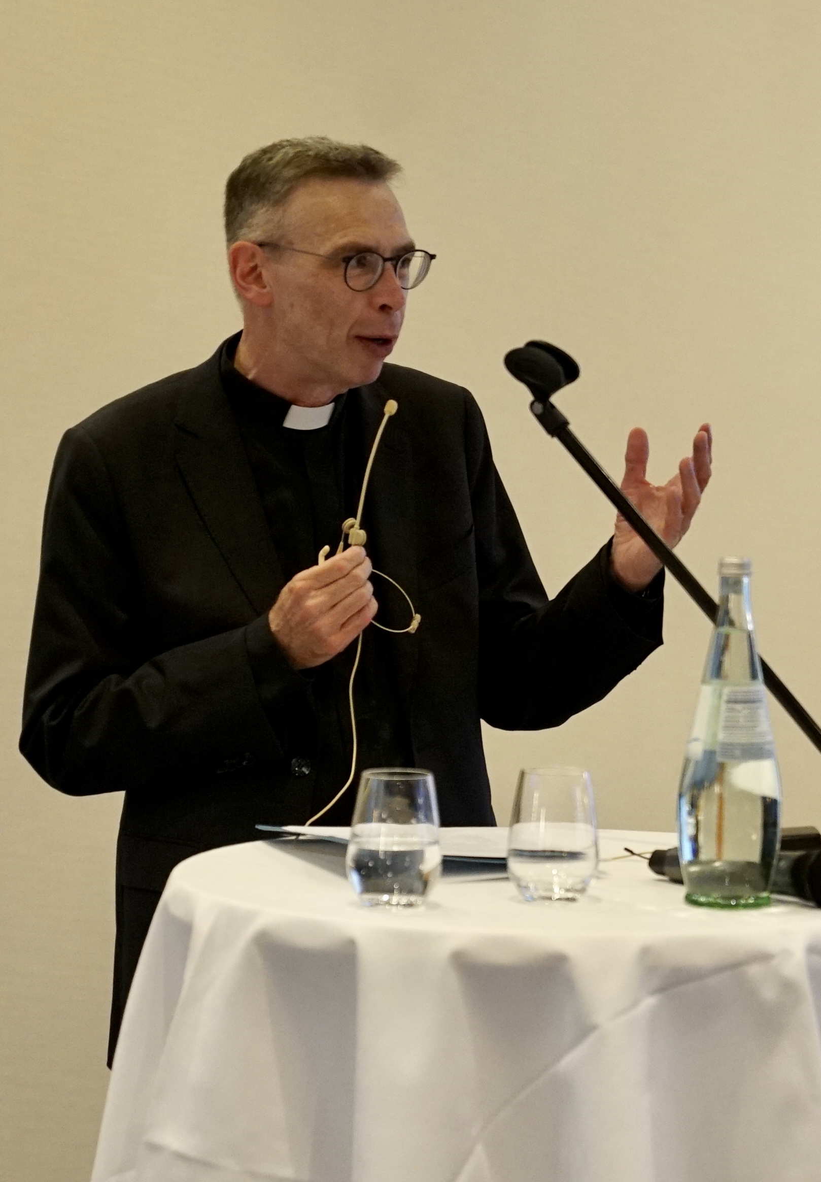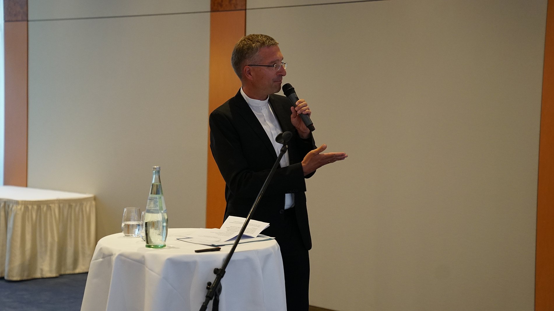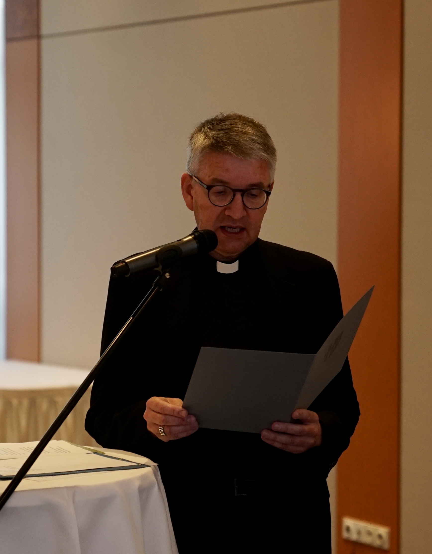 Gute Erfahrungen mit dem Kommissariat und dem Leiter dieser Einrichtung hat auch Bischof Dr. Michael Gerber gemacht. In seinem Grußwort berichtete der Bischof von Fulda davon und ging auf die Bedeutung des Kommissariats ein. Es ginge im Kommissariat darum, die Dinge zu regeln, die das Konkordat, der Vertrag zwischen der Kirche und dem Staat, vorsehe. „Sie, lieber Wolfgang Pax, waren mir seit dem ersten Tag in der Aufgabe als Bischof von Fulda ein wichtiger Türöffner und Vermittler in beiden Richtungen. Personen prägen Organisationen und Organisationen prägen Personen. Das trifft auf das Kommissariat in herausgehobener Weise zu. „Sie haben Beziehungen gepflegt und das Zusammenwirken zwischen Kirche und Politik für das Gemeinwohl fruchtbar werden lassen“, sagte Gerber. Dieser Einsatz sei immer auch ökumenisch ausgerichtet und zu leisten und dies gelinge in Hessen ganz hervorragend.
