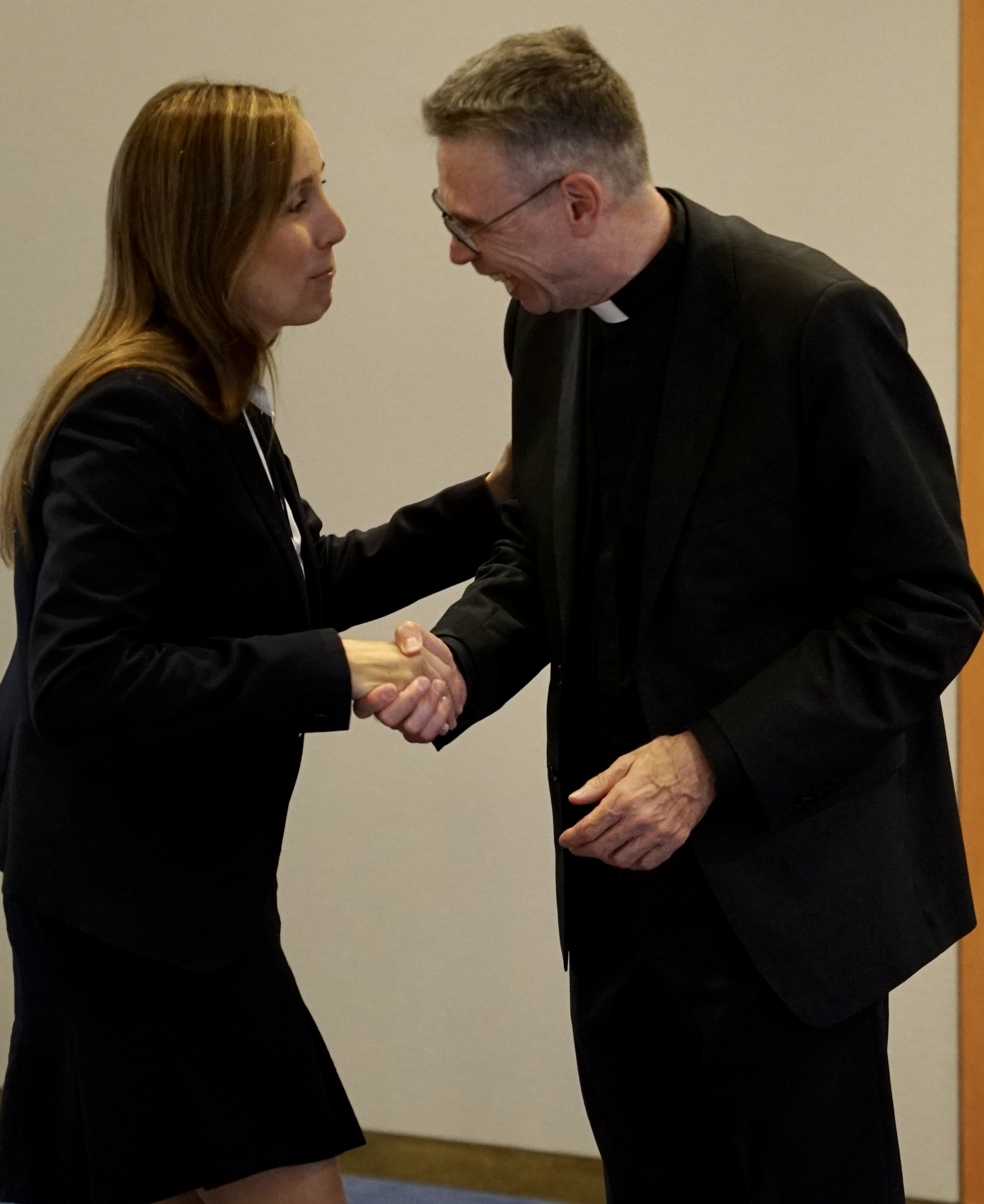 Auf die Zusammenarbeit mit Tonke Dennebaum freut sich auch Kultusminister Alexander Lorz. Er hieß den neuen Kommissar in Vertretung des Ministerpräsidenten und der Landesvertretung herzlich willkommen. Für ihn ist es eine großartige Errungenschaft, dass es ein geregeltes Miteinander zwischen Kirche und Staat in Deutschland gibt, dass es aus der Weimarer Reichsverfassung unverändert ins Grundgesetz geschafft hat, und dass das Selbstbestimmungsrecht der Kirche garantiert. Damit dieses System funktioniere brauche es Institutionen und Personen. Mit und im Kommissariat habe man beides. Eine ganz wichtige Schnittstelle und kluge und verlässliche Personen. „Lieber Dr. Pax, wir kennen uns lange. Sie waren und sind für uns ein kluger, verlässlicher und scharfsinniger Gesprächspartner. Ich erinnere mich gerne an unsere sehr fruchtbaren Gespräche aus denen ich immer beseelt und bereichert hinausgegangen bin. Sie haben viel Gutes auf den Weg gebracht“, sagte Lorz.