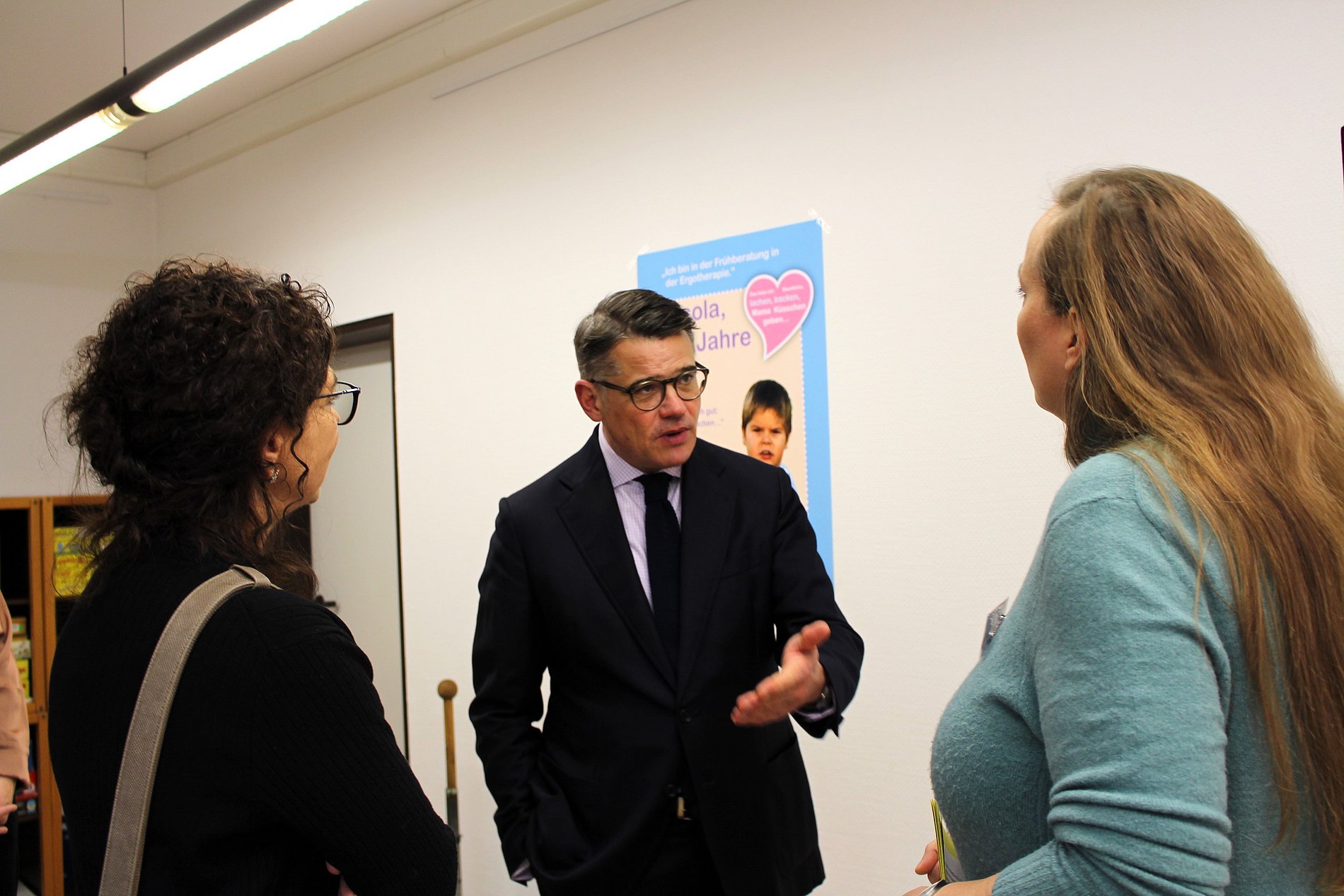 Manchmal brauchen die Eltern dringend Hilfe, weil sie mit den Problemen überfordert sind, wenn ihr Kind behindert ist. Daher war es dem Ministerpräsidenten auch wichtig, sich mit Betroffenen persönlich auszutauschen. „Dank des interdisziplinären Teams erhalten die Kinder und ihre Familien maßgeschneiderte Therapien. Dieses umfassende Konzept der Caritas beeindruckt mich sehr. Es legt den Grundstein für eine starke und inklusive Gesellschaft. Mein Dank gilt den Mitarbeiterinnen und Mitarbeitern für ihre sehr wichtige Arbeit.“